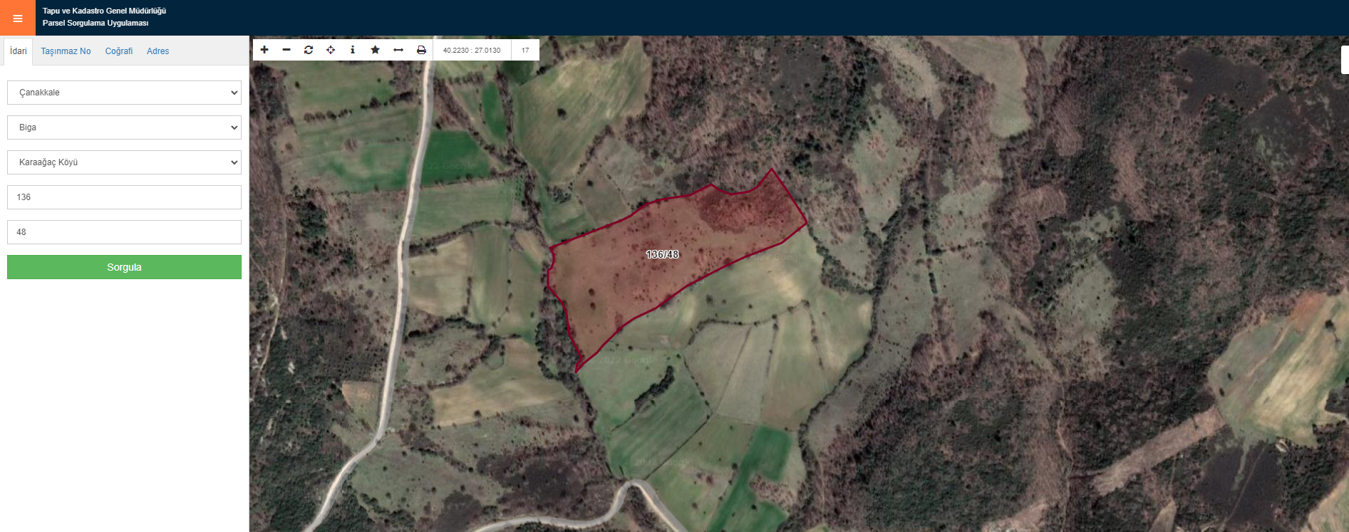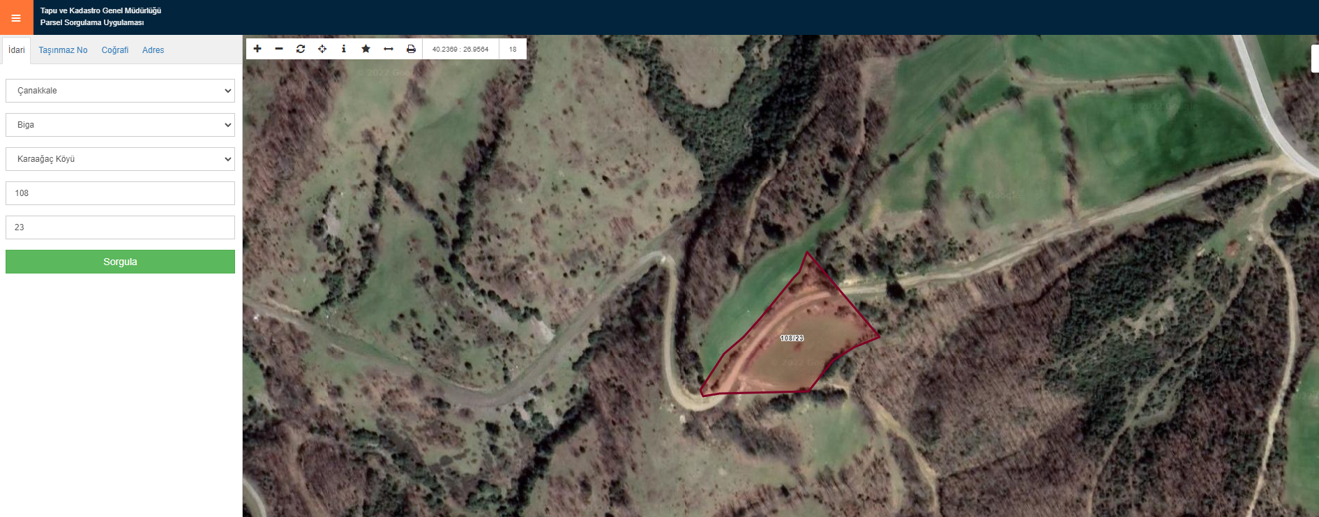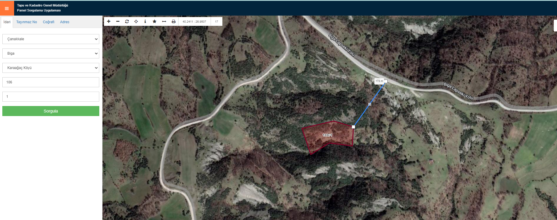 ÇANAKKALE BİGA KARAAĞAÇ KÖYÜ ADA: 106 PARSEL : 1 10349 M2 ARSAMIZ KARAAĞAÇ KÖYÜNDE BİGA LAPSEKİ KARAYOLUNA 170 METRE MESAFEDE YATIRIMA UYGUN HESAPLI