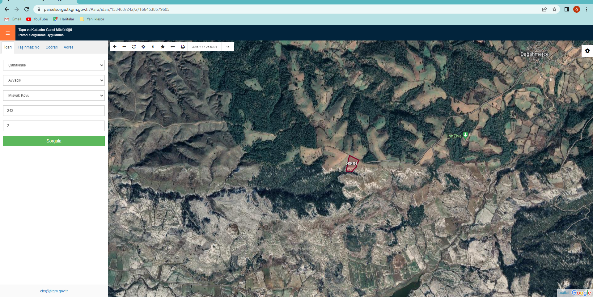 ÇANAKKALE AYVACIK MİSVAK KÖYÜ ADA : 242 PARSEL : 2 17455 M2 TARLAMIZ DAĞAHMETÇE VE MİSVAK KÖYÜNÜN ORTASINDA BARAJA 1.4 KM UZAKLIKTA YATIRIMA UYGUN. İZMİR ÇANAKKALE YOLUNA 9 KM UZAKLIKTA.