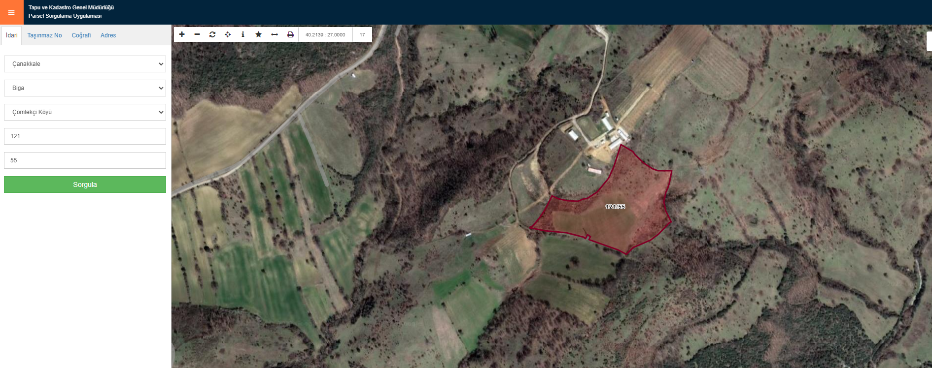 ÇANAKKALE BİGA İLYASALAN KÖYÜ ADA : 121 PARSEL : 55 25894 M2 TARLA KADASTRAL YOLA 180 METRE CEPHESİ OLAN ÇÖMLEKÇİ İLK ÖĞRETİM OKULUNA VE KÖY MERKEZİNE 1 KM UZAKLIKTA OLAN